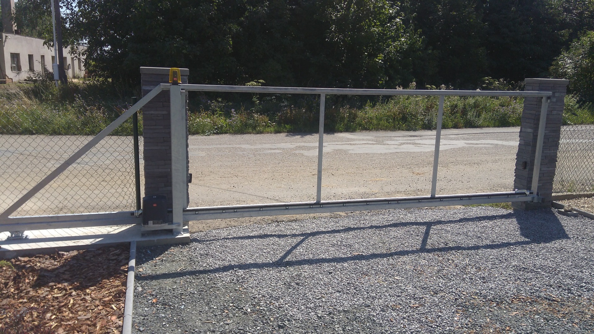 Nejprodávanější druh bran. Nejlepší bezúdržbové řešení. Rám brány je nesený na nosném c-profilu cca 6-8cm nad zemí. Konstrukce brány se kotví na boční betonový základový blok vedle průjezdu na levé nebo pravé vnitřní straně.